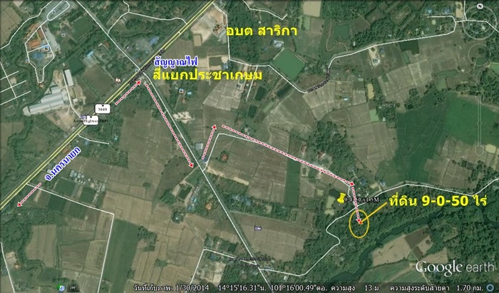 ตำแหน่งที่ดิน 14.25230555 N 101.2708528 E