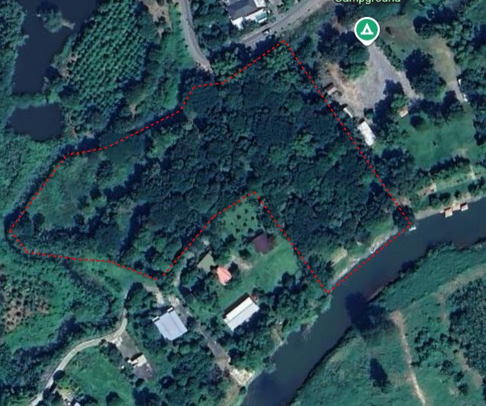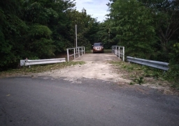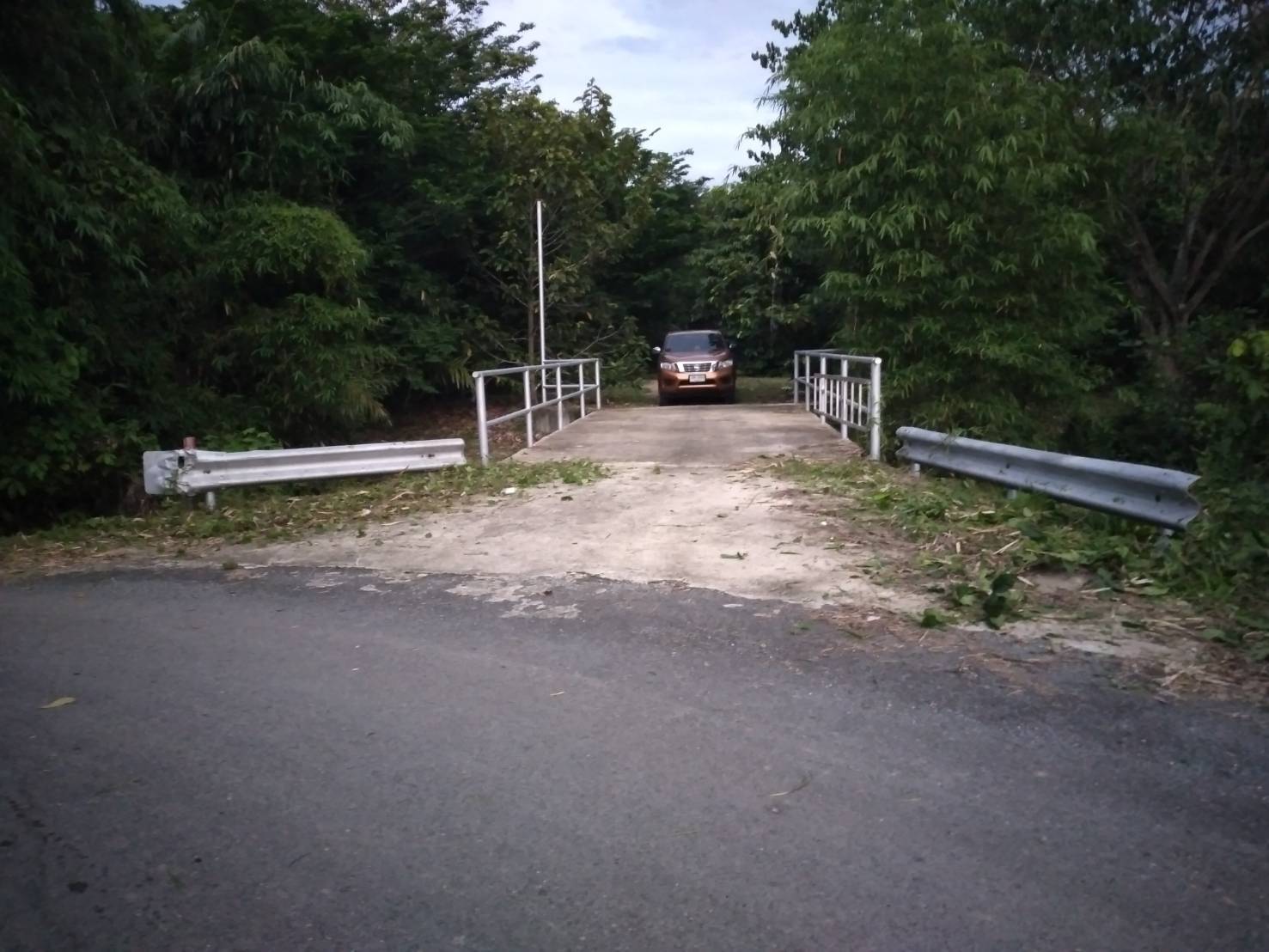 ขับมาตามถนน จนเจอสะพานคอนกรีตข้ามคลองเล็กๆ ตรงหน้า ที่ดิน เริ่มจากสะพานเข้าไปจนจรดแม่น้ำ