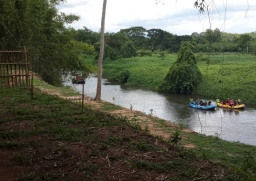 น้ำในแม่น้ำใสใหลรินผ่านหน้าที่ดินแปลงนี้ไม่ขาดสาย เพราะเขื่อนขุนด่านปราการชล ได้ปล่อยน้ำลงมาตลอดเวลาทั้งปี