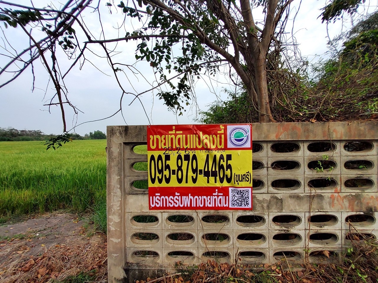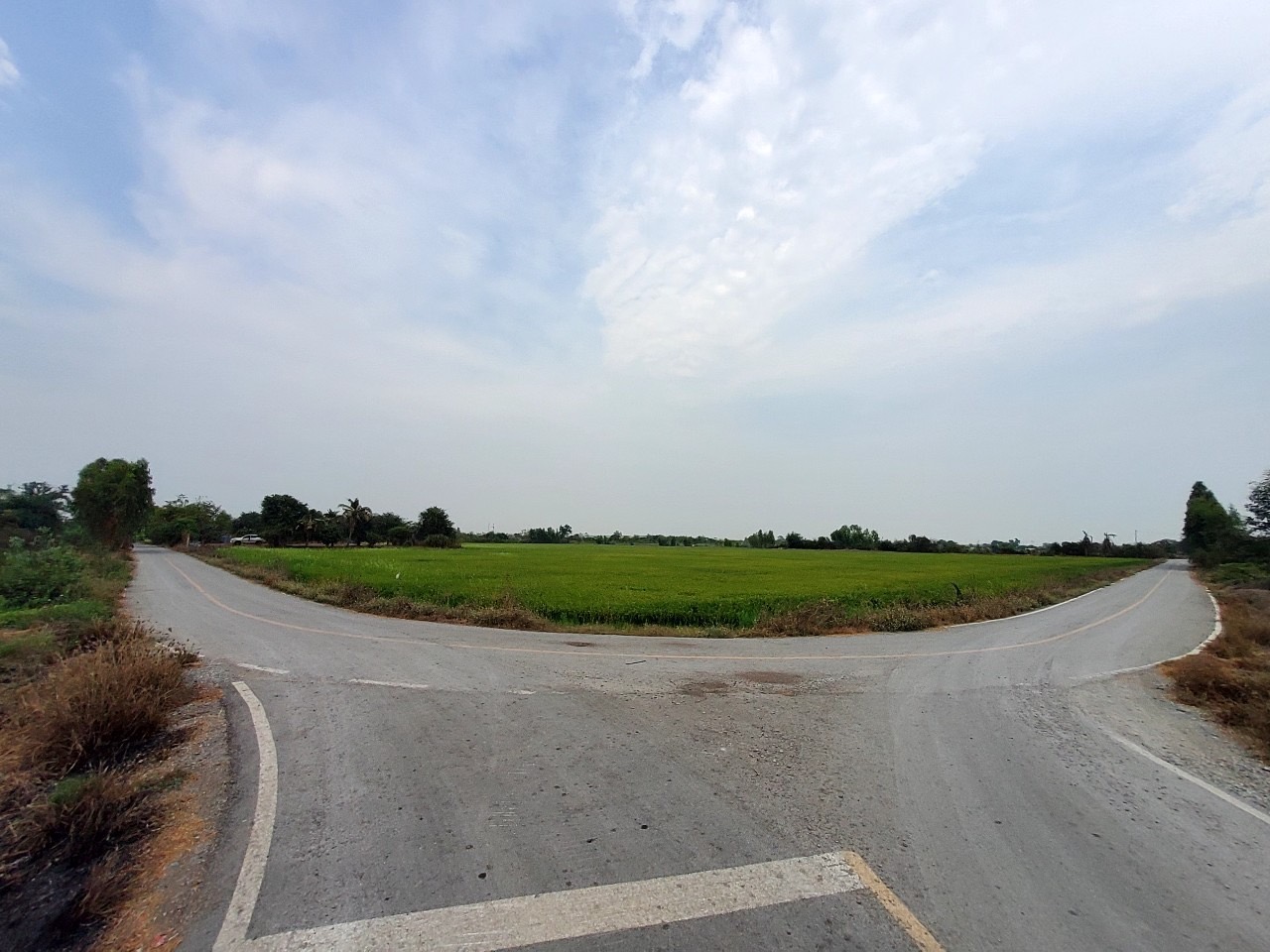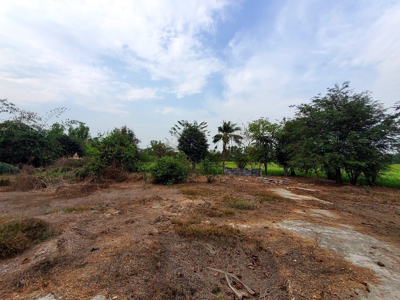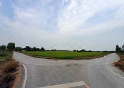 ที่ดินแปลงมุม ปัจจุบันที่ดินส่วนใหญ่เป็นนาข้าว ถมไว้แล้วประมาณ 1 ไร่