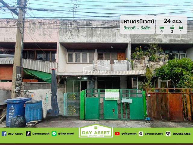 เดย์ อสังหาขายทาวน์เฮาส์ 2 ชั้น หมู่บ้าน มหานครนิเวศน์ วิภาวดีรังสิตซอย 64 (Mahanakornniwet Soi Vibhavadi Rangsit 64) ใกล้สนามบินดอนเมือง/รถไฟฟ้าสายสีชมพู-สีเขียว-สีม่วง เนื้อที่ 24 ตร.ว. ขายเพียง 2,890,000 ล้านบาท