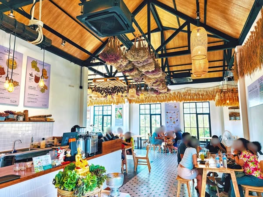 - ร้านมีทั้งโซนในร่ม + กลางแจ้ง + สวนเดินเล่น + แปลงผัก