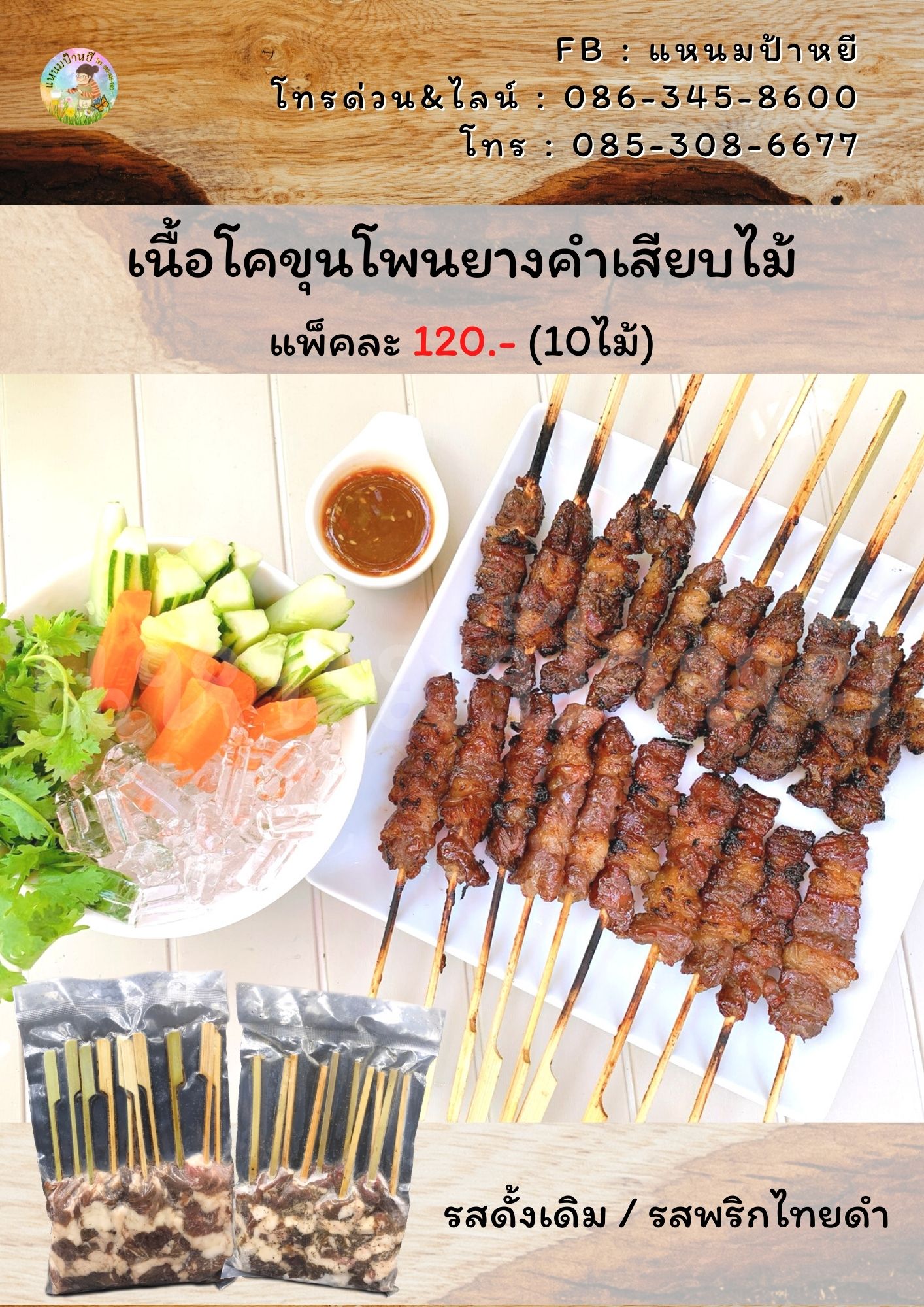 • #เนื้อโคขุนโพนยางคำ แบบเสียบไม้ หมักปรุงรสแล้วเรียบร้อย