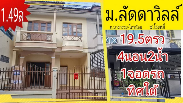นัฐชภัสร์ นวลถิระยนต์ขาย ทาวน์โฮม ลัดดาวิลล์1-2 72 ตรม. 19.5 ตร.วา จ.นนทบุรี ถ.บางกรวย-ไทรน้อย