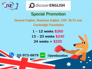 สมัครเรียนภาษาอังกฤษตั้งแต่ 24 สัปดาห์ขึ้นไป ราคาเพียง 220 AUD ต่อสัปดาห์