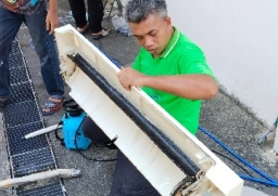 ใช้ปั้มน้ำแรงดันสูงฉีดอัดล้างท่อน้ำทิ้ง และชิ้นส่วนต่างๆ อย่างละเอียด