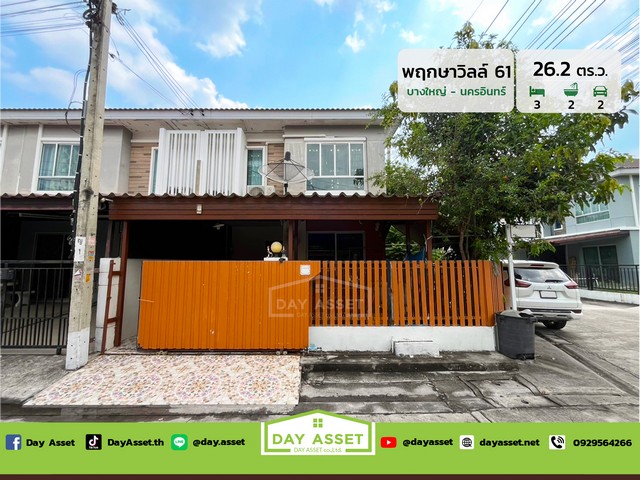 เดย์ อสังหาขายทาวน์เฮาส์ 2 ชั้น หมู่บ้าน พฤกษาวิลล์ 61 บางใหญ่ - นครอินทร์ - Pruksaville 61 Bangyai - NakhonIn หลังหัวมุม ใกล้รถไฟฟ้าสายสีม่วง เนื้อที่ 26.2 ตร.ว. ขายเพียง 2,590,000 ล้านบาท