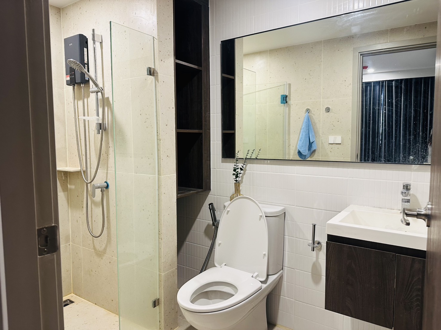- กระจกกั้นห้องน้ำโซนเปียกแห้ง