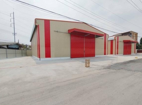ประตูบานคู่ซ้าย-ขวา ไม่มีเสากลาง มี 2 โกดัง สร้างเสร็จใหม่พร้อมอยู่ มีที่รถรอบโกดัง
