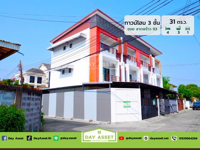 เดย์ อสังหาขายทาวน์โฮม 3 ชั้น ซอยลาดพร้าว 93 (หลังริม) ต่อเติมหลังคารอบบ้านพร้อมของแถมอื่นๆตามตกลง เดินทางสะดวกเชื่อมต่อได้หลายเส้นทาง ใกล้รถไฟฟ้าสายสีเหลือง เนื้อที่ 31 ตร.ว. ขายเพียง 5,690,000 ล้านบาท