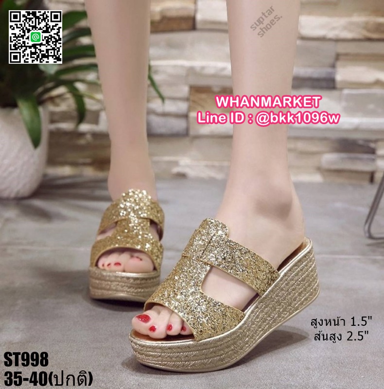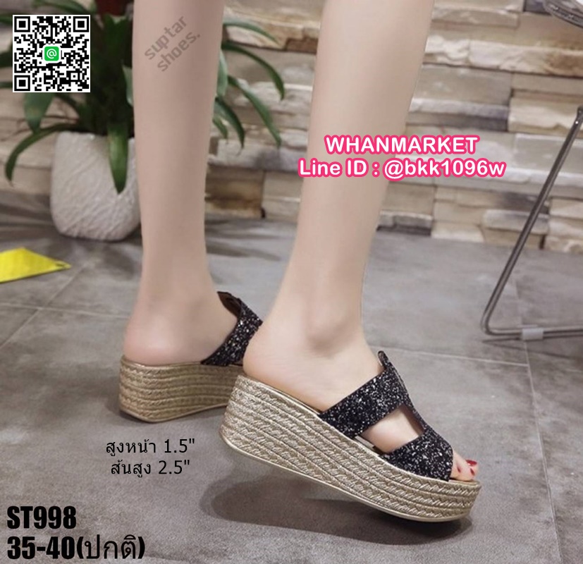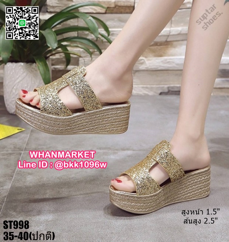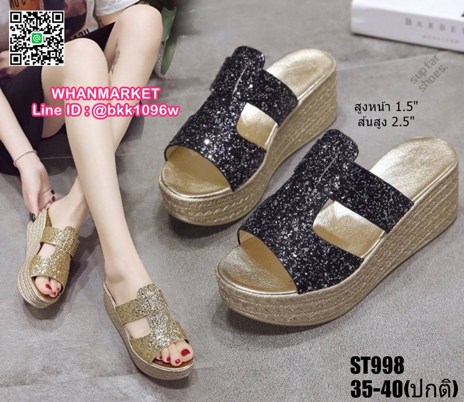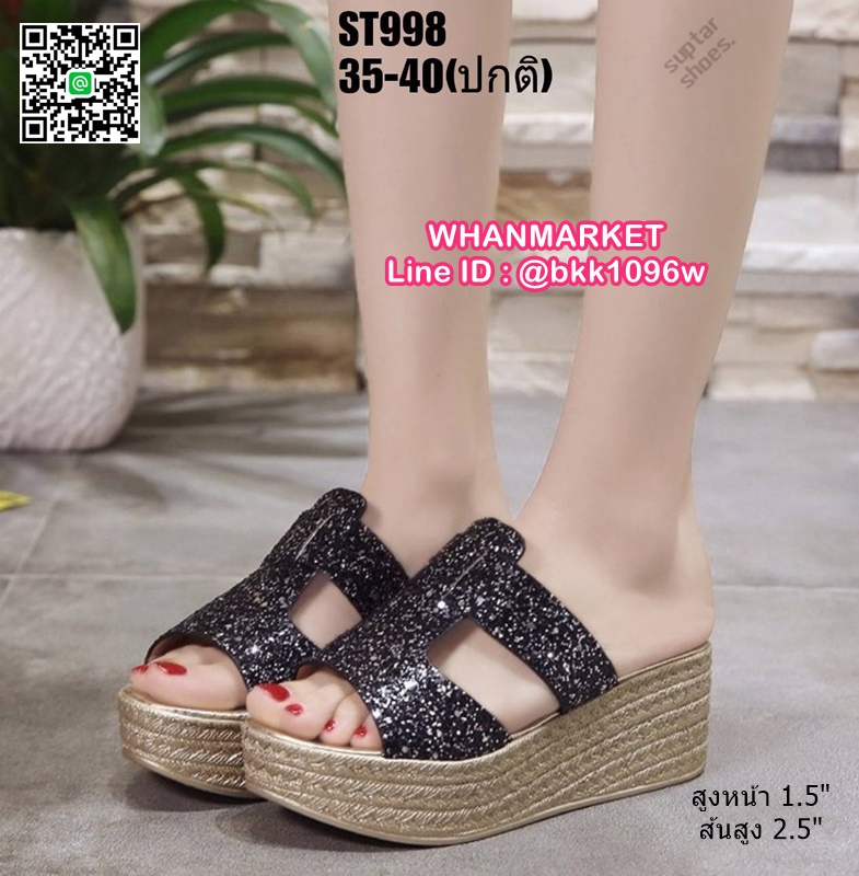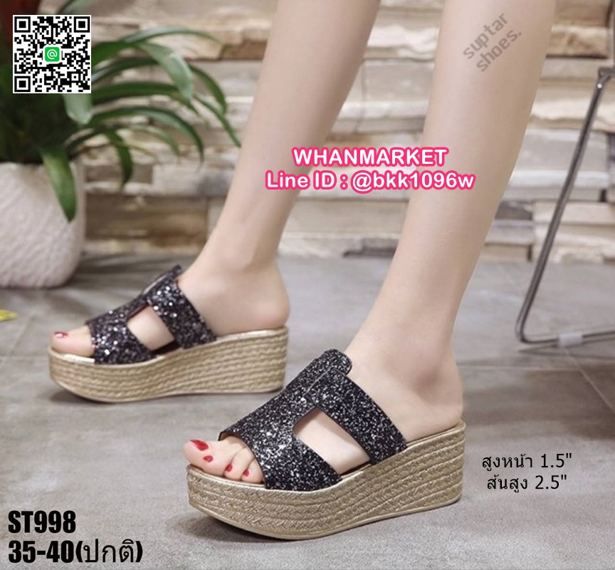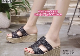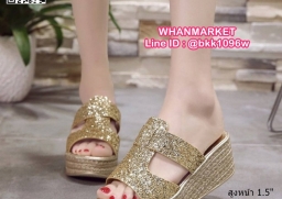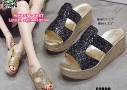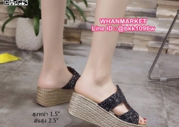 WhanMarketรองเท้าส้นเตารีด สูง 2.5 นิ้ว แบบสวม งานนำเข้า สไตล์เกาหลี วัสดุคาดหน้ากริตเตอร์ เล่นแสงวิบวับสวยหรู น้ำหนักเบา ใส่สบายมาก เสริมหน้า 1.5 นิ้ว หลัง 2.5 นิ้ว ใส่แล้วขับผิวขาว