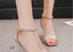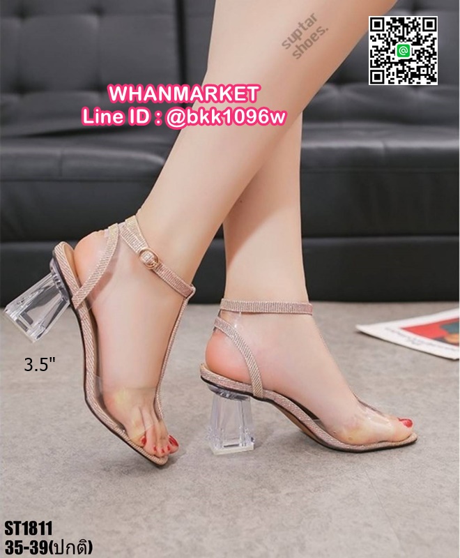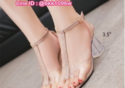WhanMarketรองเท้าส้นแก้ว ส้นสูง 3.5 นิ้ว งานนำเข้า วัสดุด้านหน้าเป็นpuใสนิ่ม สายรัดและพื้นเป็นหนังกากเพชร สวยหรู เล่นแสงวิบวับ พื้นนุ่ม สายตะขอเกี่ยวปรับขนาดได้ แบบสวยหรู สอยให้ไวเลยจร้าาา..เด่วหมดน้าา..