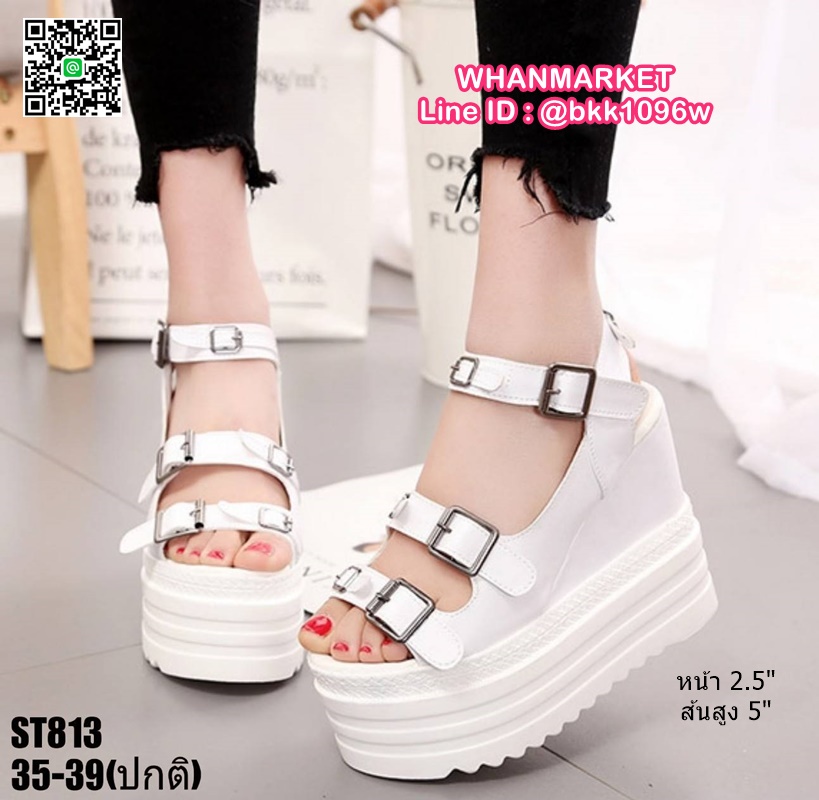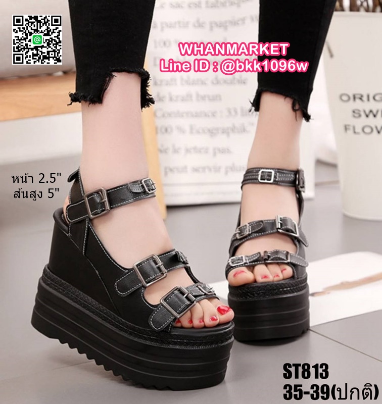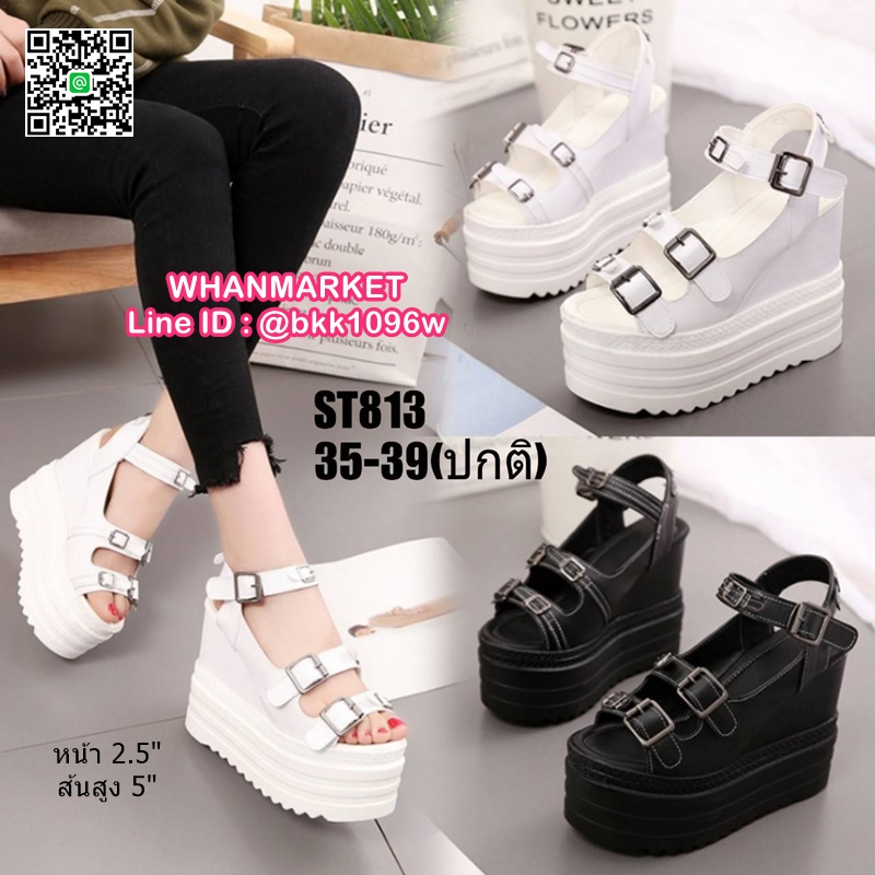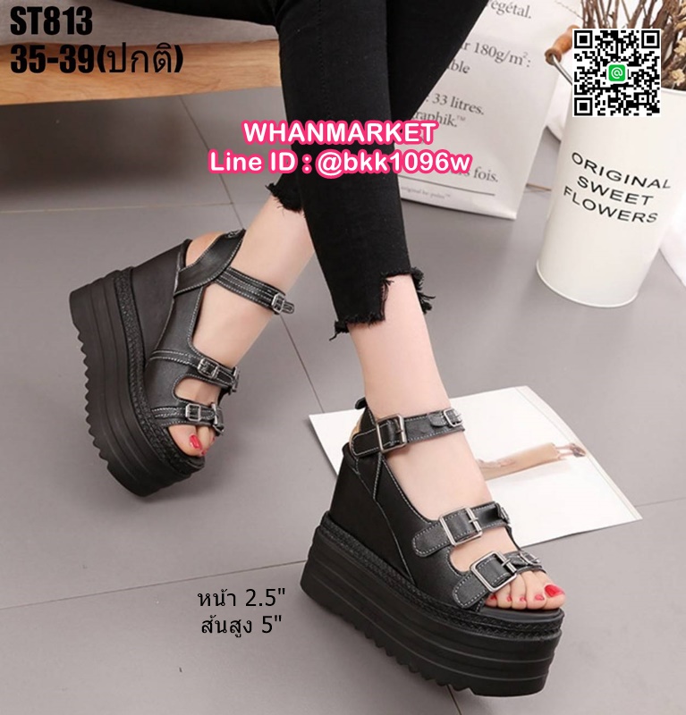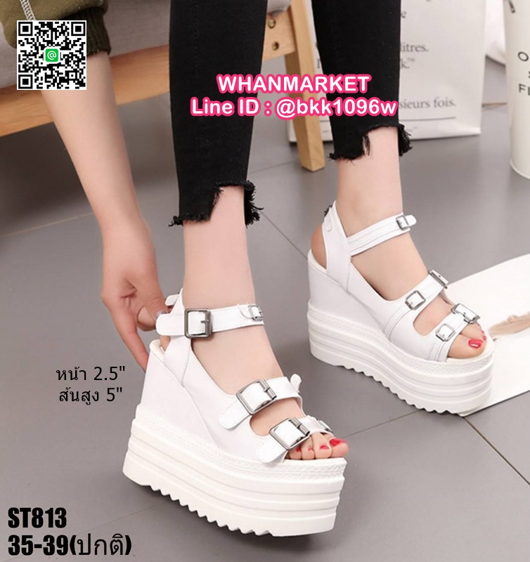 WhanMarketรองเท้าส้นตึก สูง 5 นิ้ว เสริมหน้า 2.5 นิ้ว รัดข้อตะขอเกี่ยว เปิดท้าย งานนำเข้า วัสดุหนังpuหนังนุ่ม ด้านหน้าคาดสายเข็มขัด 3 ตอน สายปรับขนาดได้ พื้นนุ่มแถบเก็บหน้าเท้าสวยมากก น้ำหนักเบาใส่สบายคะ สวยทุกสี สั่งเลยจร้า งานเก๋ใส่แล้วสวยดูดีไม่ซ้ำใครค่ะ