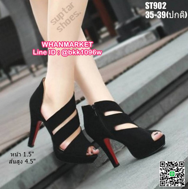 WhanMarketรองเท้าส้นสูง เปิดหน้า หุ้มส้น งานนำเข้า วัสดุหนังกำมะหยี่ ด้านข้างแต่งคาดเฉียงเก๋ไก๋ มีซิปข้าง สวมถอดได้ง่ายสะดวก งานสวยใส่สบาย เสริมหน้า 1.5 นิ้ว ส้นหลัง 4.5 นิ้ว ใส่แล้วสวยโดดเด่นไม่ซ้ำใคร จัดไปเลยจร้าา..