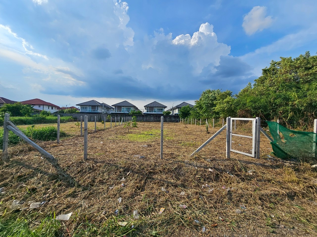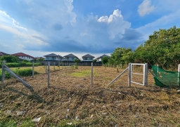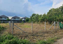 ที่ดินเปล่าขนาด 166 วา ถมแล้วปรับพื้นที่เรียบร้อย ล้อมรั้วบอกอาณาเขตชัดเจน เงียบ สงบ