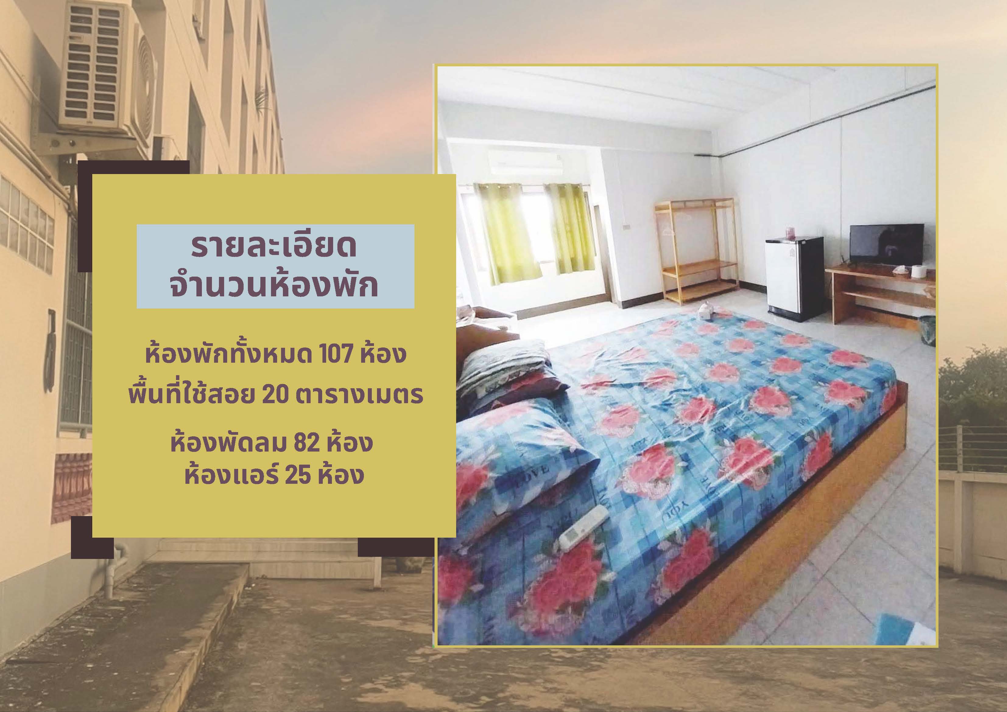 ห้องพัดลม 82 ห้อง แอร์ 25 ห้อง