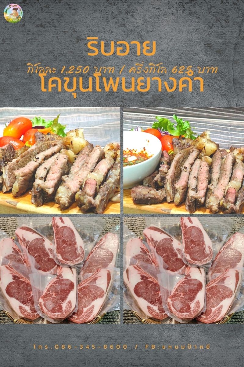 ริบอายโคขุนโพนยางคำ กิโลละ 1,250 บาท (แบ่งครึ่งกิโลได้ ราคา 625 บาท)