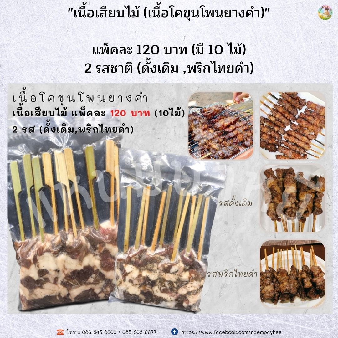 เนื้อโคขุนโพนยางคำเสียบไม้ สั่งได้ค่ะอร่อยต้องลอง