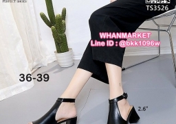 WhanMarketรองเท้าส้นตันแฟชั่น สไตล์เกาหลี หนังพียูอย่างดี แต่งหุ้มเต็มหน้าเท้า เปิดหัวเท้า ทรงสวยแซ่บ ใส่ง่ายตะขอเกี่ยว ใส่แล้วเท้าเรียวสวยอินเทรนสุดๆ แมทง่ายใส่กับชุดไหนก็สวย สาวๆฟาดให้ไวเลยค่า