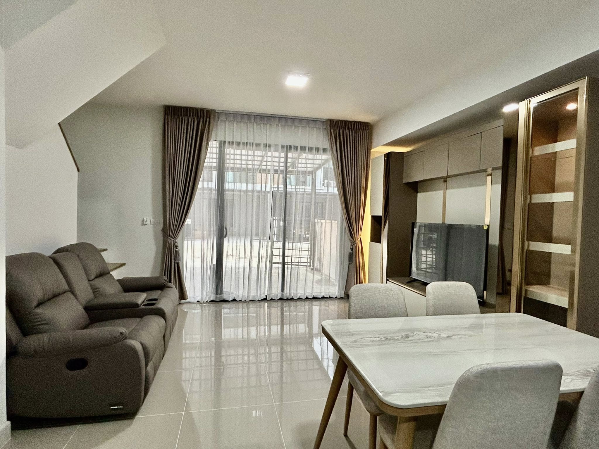 - ห้องนั่งเล่น --> ชุดโต๊ะกินข้าว 4 ที่นั่ง ท้อปหิน โซฟา recliner 2 ที่นั่ง ชุดเคาร์เตอร์ครัว ชุดวางทีวี