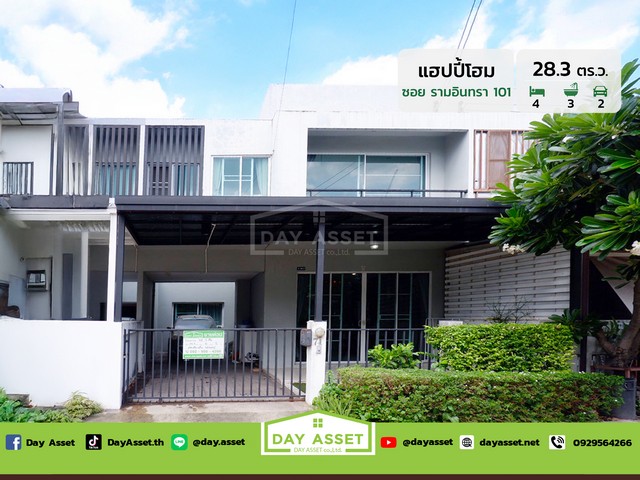 เดย์ อสังหาขายทาวน์โฮม 2 ชั้น หมู่บ้านแฮปปี้ โฮม รามอินทรา 101 : Happy Home Ramintra 101 แถมเครื่องปรับอากาศ เฟอร์นิเจอร์และอื่นๆตามตกลง โครงการติดถนนรามอินทรา ใกล้รถไฟฟ้าและแฟชั่นไอส์แลนด์ เนื้อที่ 28.3 ตร.ว. ขายเพียง 4,300,000 ล้านบาท
