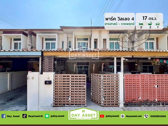 เดย์ อสังหาขายทาวน์โฮม 2 ชั้น หมู่บ้านพาร์ค วิลเลจ 4 สารสาสน์-ราชพฤกษ์ : Park Village 4 Sarasas-Ratchapruek ต่อเติมส่วนหลังคาจอดรถ แถม แอร์ เนื้อที่ 17 ตร.ว. ขายเพียง 1,190,000 ล้านบาท