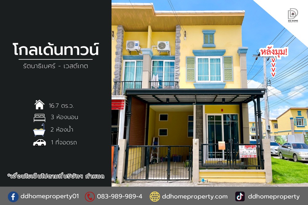 ดีดี โฮม พร็อพเพอร์ตี้ ดีดี โฮม พร็อพเพอร์ตี้ขายหมู่บ้านโกลเด้นทาวน์ รัตนาธิเบศร์-เวสต์เกต (หลังมุม) บ้านใหม่พร้อมอยู่ (DD002064)