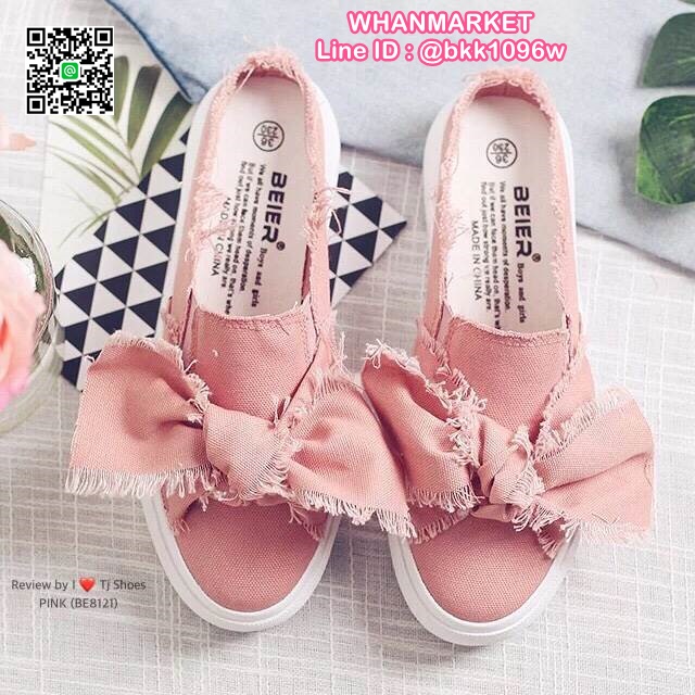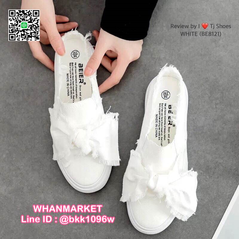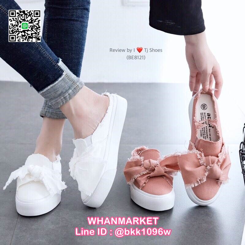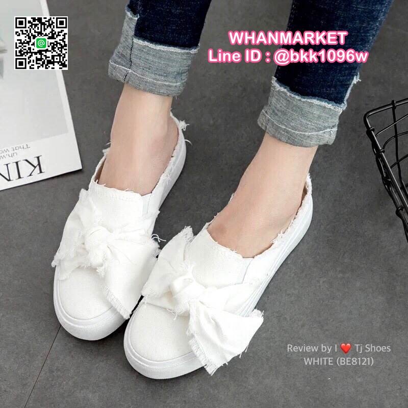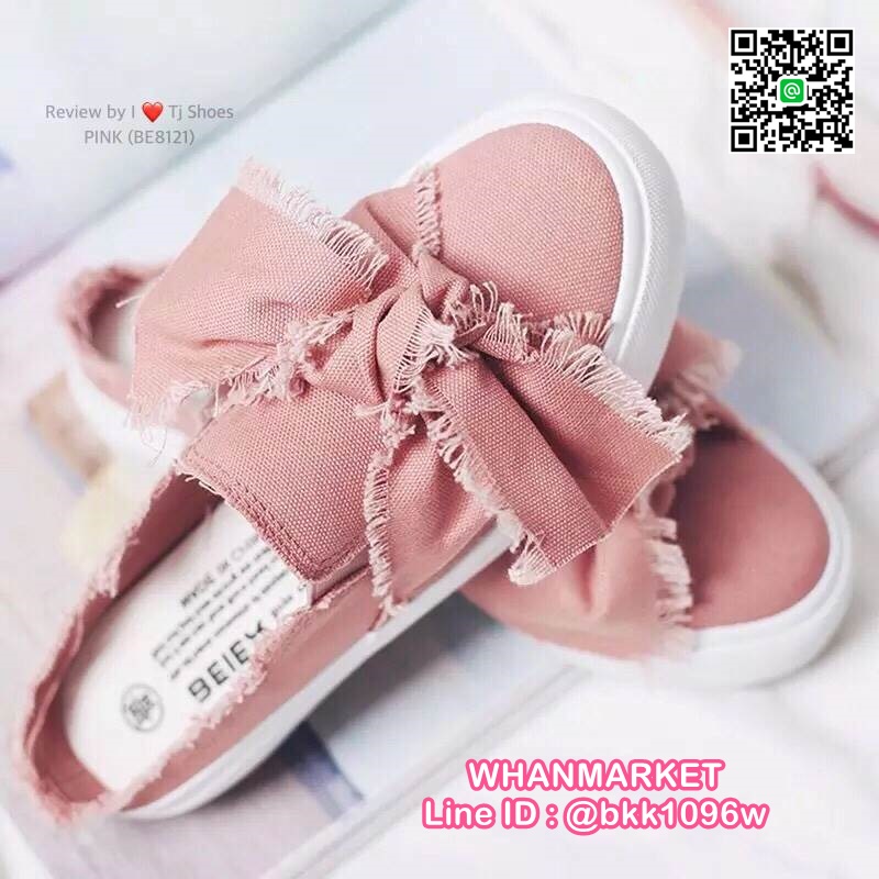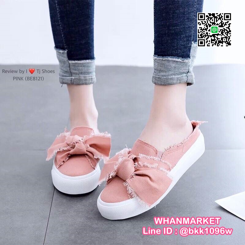 WhanMarketรองเท้าผ้าใบ เปิดท้าย ด้านหน้าแต่งโบว์ผูกน่ารักๆ นำเข้า เกร๋ชิคสุดๆ สวมใส่ง่าย ใส่นิ่มเดินสบาย พื้นยางเกรด A ใส่กับชุดอะไรก้น่ารัก งานดีคุณภาพดี ช้าหมดอดน่ะคร๊ะ อย่ามัวรีรอ สั่งด่วนๆเลยจร้า