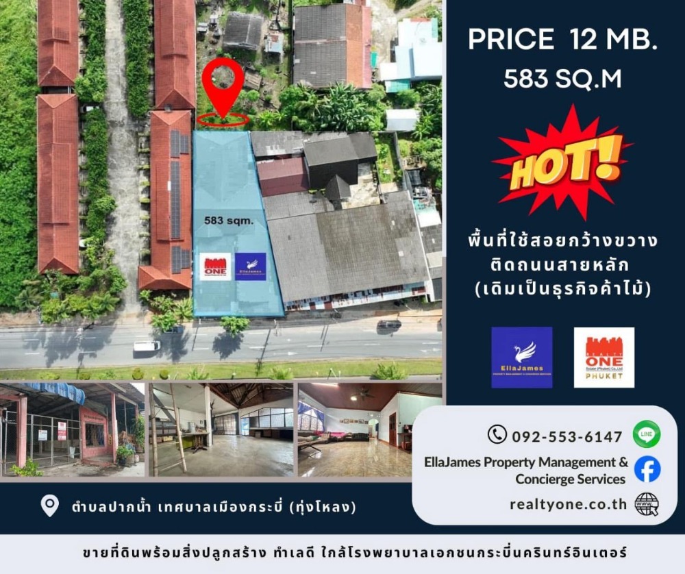 • ขายที่ดินพร้อมสิ่งปลูกสร้าง ทำเลดี ใกล้โรงพยาบาลเอกชนกระบี่นครินทร์อินเตอร์ ติดถนนเส้นหลักถึงหน้าแปลง ข้างในกว้างขวางพื้นที่ใช้สอยเหลือเยอะ เดิมๆเป็นธุรกิจค้าขายไม้ ถ.กระบี่ ต.ปากน้ำ อ.เมือง จ.กระบี่