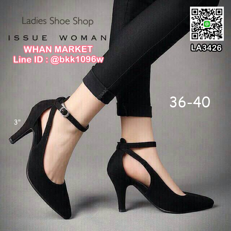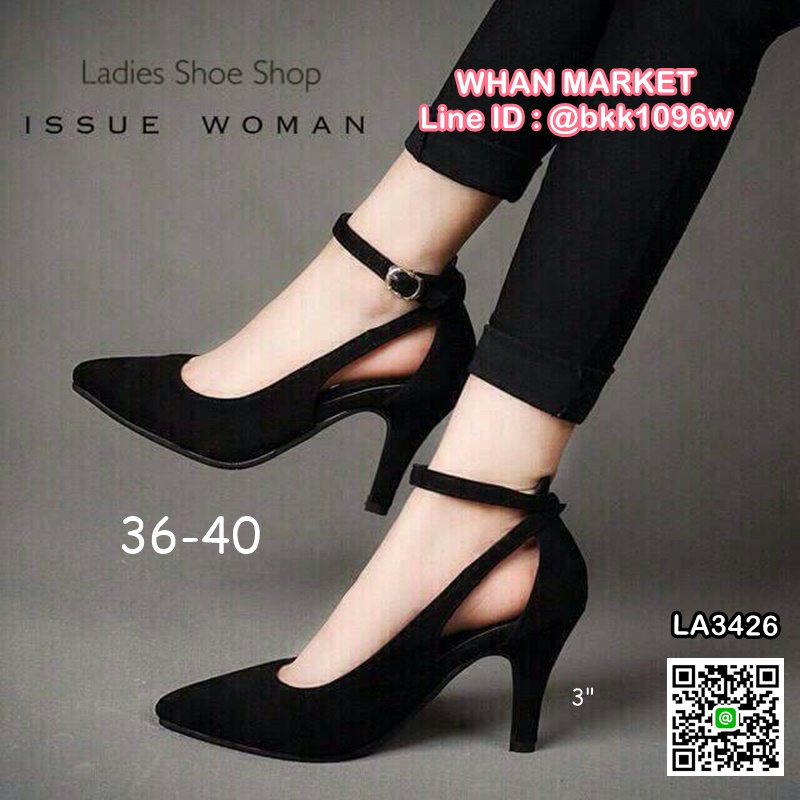 WhanMarketรองเท้าคัชชู ส้นสูง3นิ้ว ทรงหัวแหลม เปิดข้าง รัดข้อ วัสดุหนังชามัวร์นิ่ม สูงกำลังดี ใส่สบาย พื้นบุนุ่ม แบบเรียบ หรูดูแพง ใส่เรียนหรือทำงานได้หมดจร้า