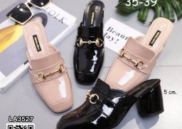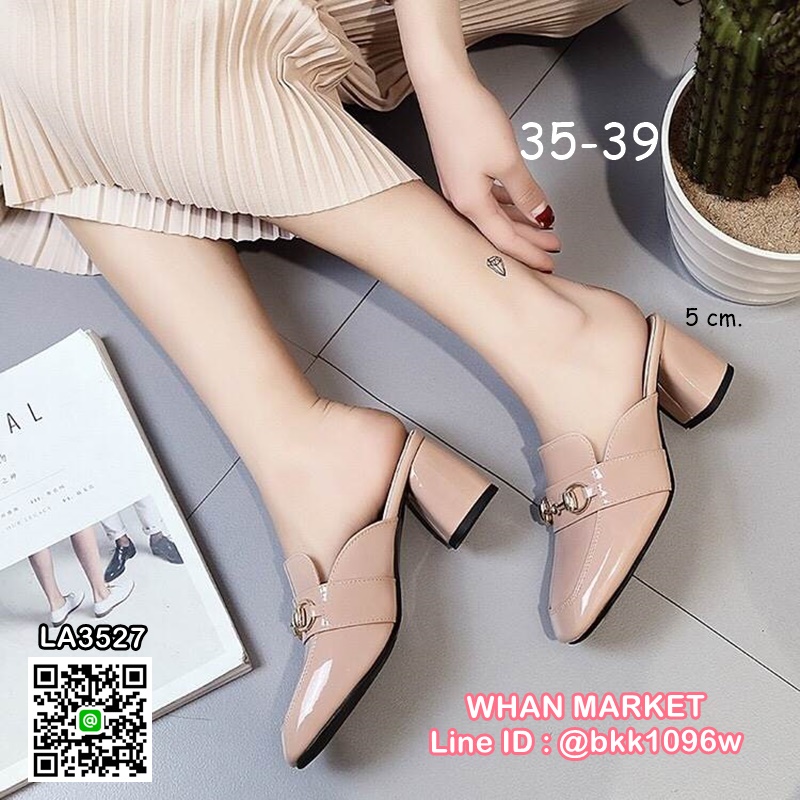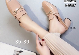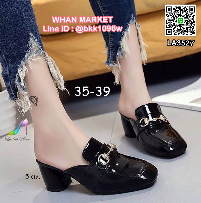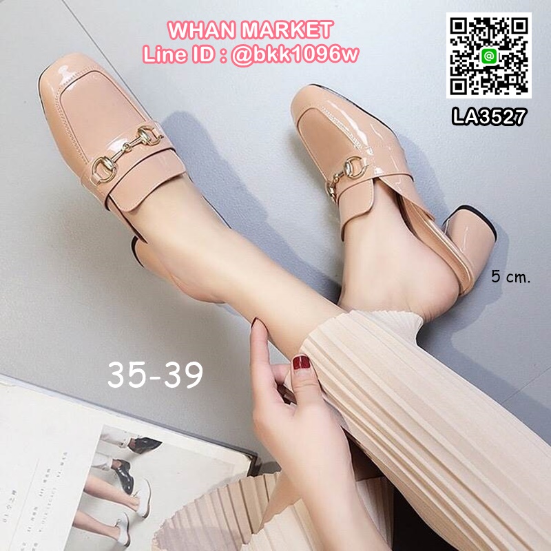 WhanMarketรองเท้าคัชชู ส้นตัน เปิดส้น หนังแก้ว ส้นสูง 5 cm แต่งอะไหล่ ด้านในซับอย่างดี นิ่มไม่บีบเท้า ทรงสวย กระชับเท้า