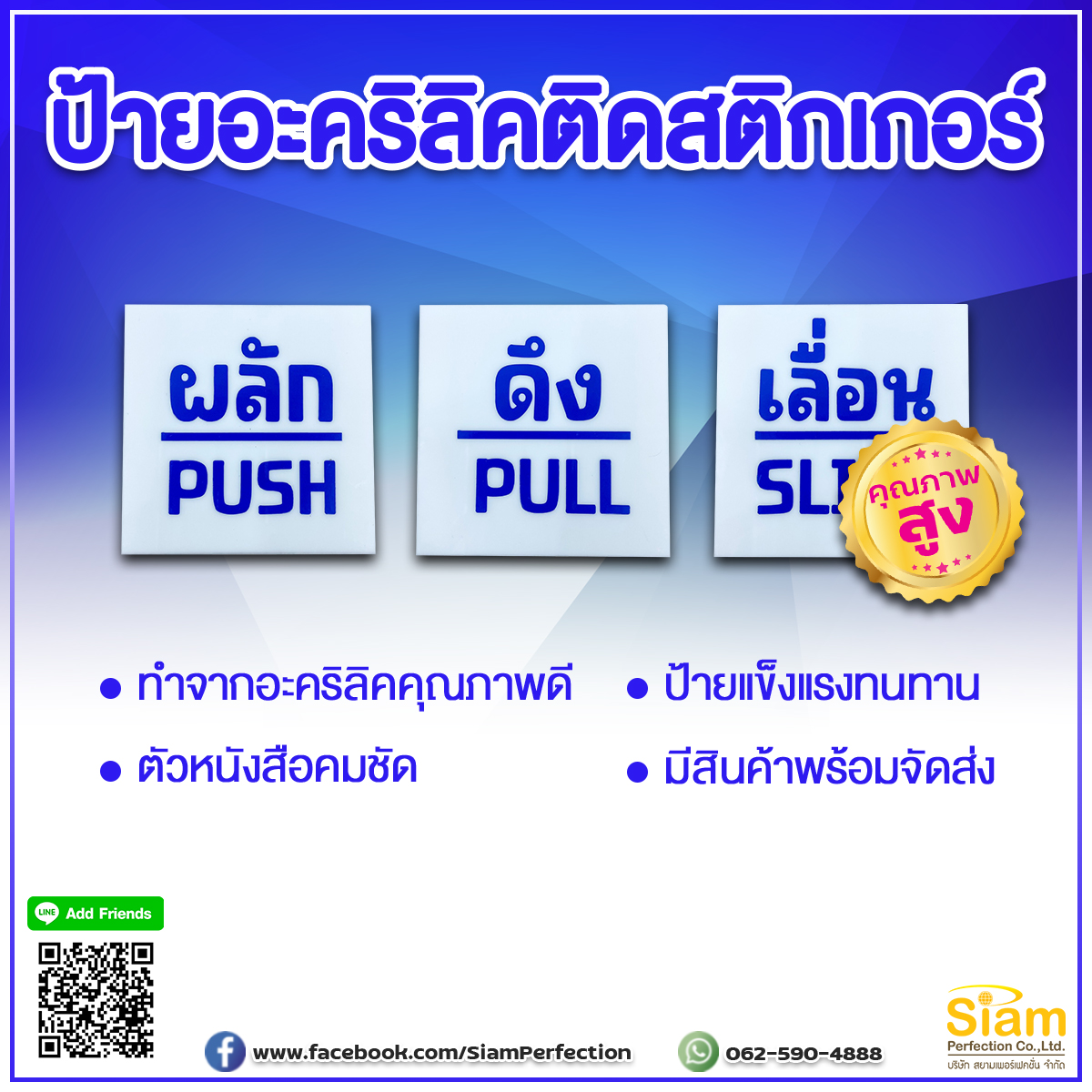 ป้ายอะคริลิคติดสติกเกอร์ ผลัก ดึง เลื่อน พร้อมส่ง