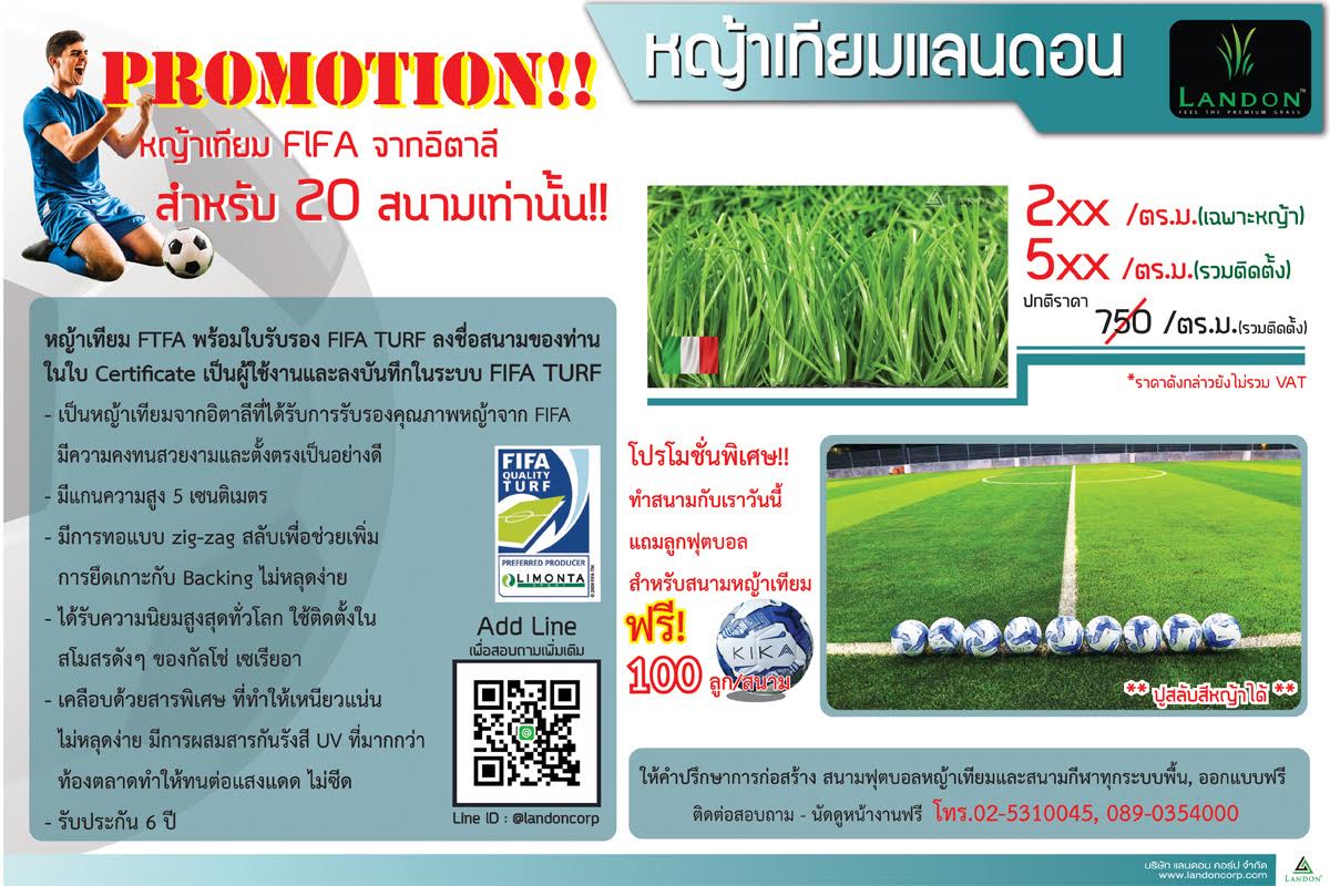 หญ้าเทียมสนามฟุตบอลเริ่มต้น 2xx บาท ต่อตารางเมตร