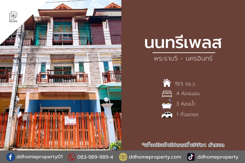 ดีดี โฮม พร็อพเพอร์ตี้ ดีดี โฮม พร็อพเพอร์ตี้ขายทาวน์เฮ้าส์ หมู่บ้านนนทรีเพลส พระราม5-นครอินทร์ (DD002071)