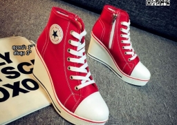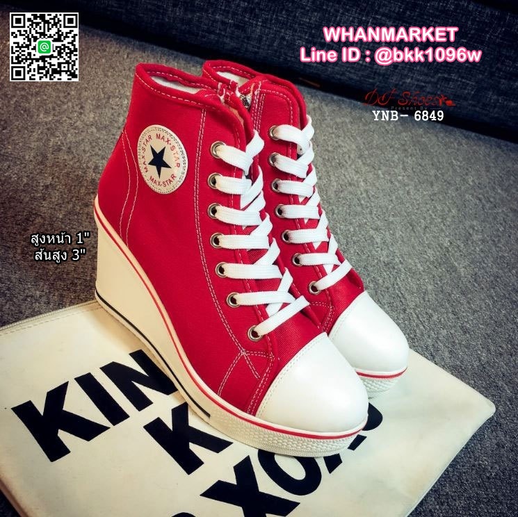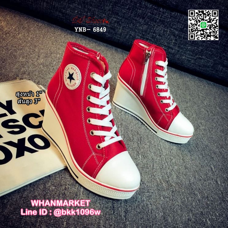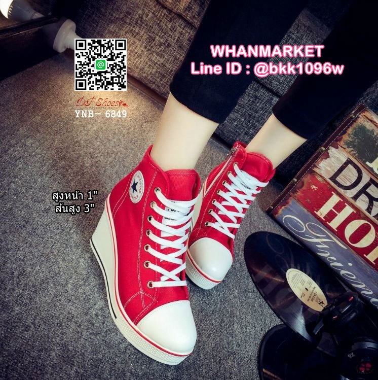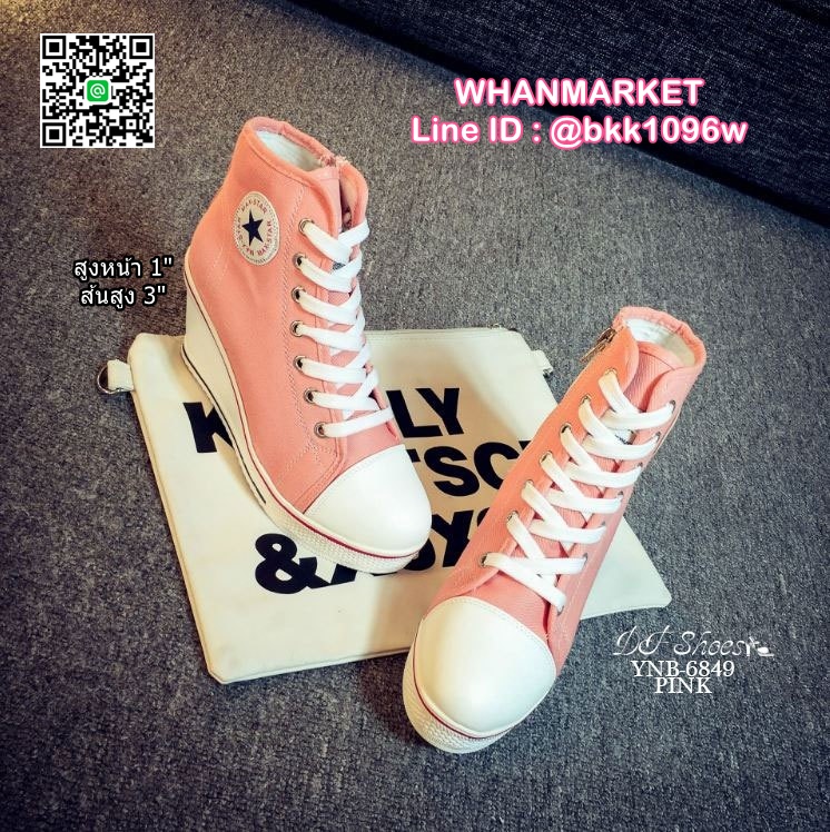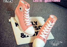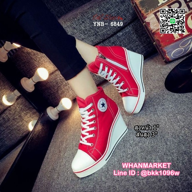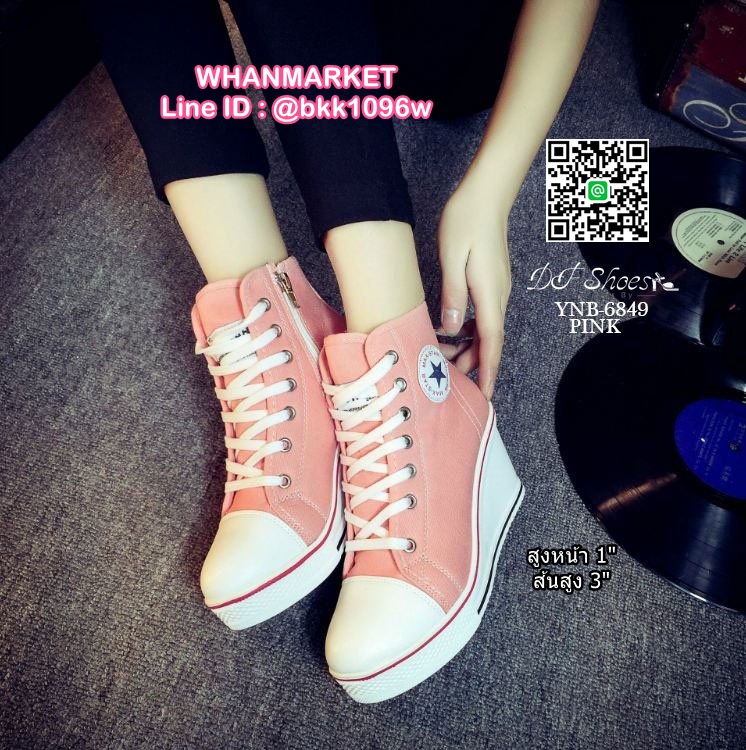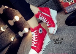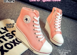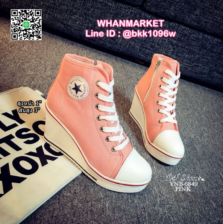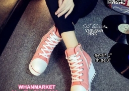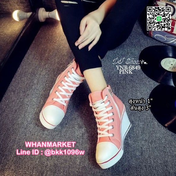 WhanMarketรองเท้าผ้าใบเสริมส้น หุ้มข้อ งานนำเข้า วัสดุผ้าแคนวาส ส้นPU สูง 3 นิ้ว มีซิปด้านข้าง ใส่ง่าย ทรงสวยขนาดนี้ รีบสั่งกันนะคะสาวๆ