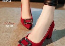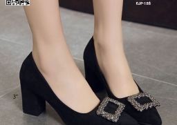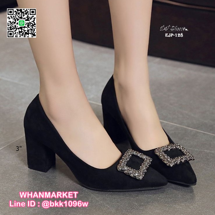 WhanMarketรองเท้าคัชชู ส้นสูง 3 นิ้ว หัวแหลมนำเข้า วัสดุสักหลาด ส้นตัน ประดับโลหะที่หัวรองเท้า สง่ามาก ทรงสวย พลาดไม่ได้จ้า