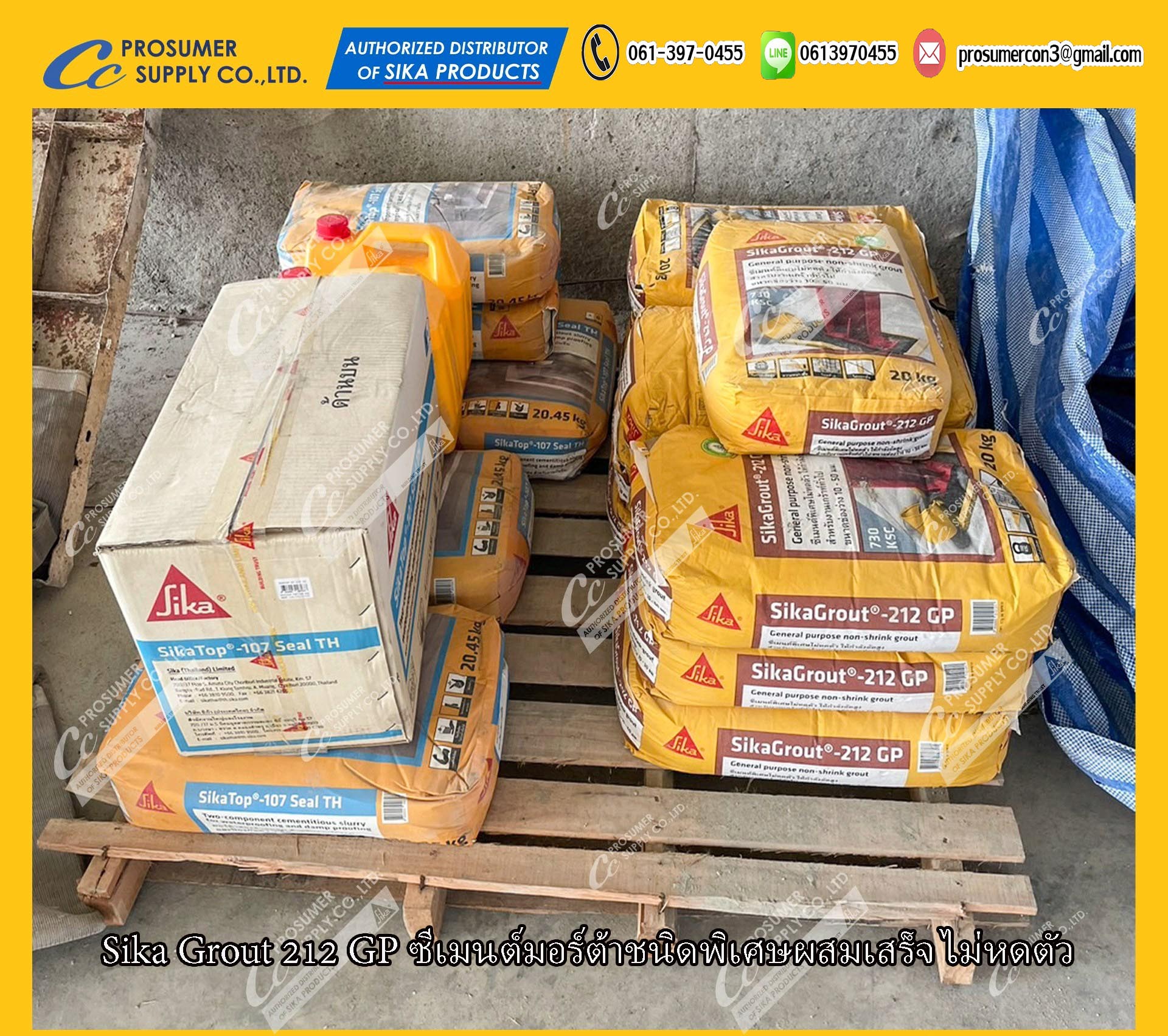 ศิริกัญญาSika Grout 212 GP ซีเมนต์มอร์ต้าชนิดพิเศษผสมเสร็จ ไม่หดตัว สำหรับงานซ่อมโครงสร้างคอนกรีต งานเทรากฐาน เครื่องจักร และซ่อมรูโพรงคอนกรีต ทนต่อแรงกระแทก มีค่ารับกำลังอัดสูง ปรับความข้นเหลวได้