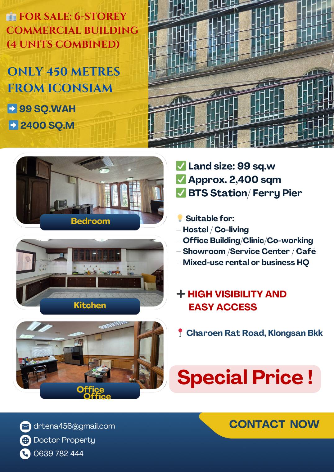 DOCTOR PROPERTYขายด่วนอาคารพาณิชย์ 6 ชั้น ใกล้ ICONSIAM เพียง 450 เมตร