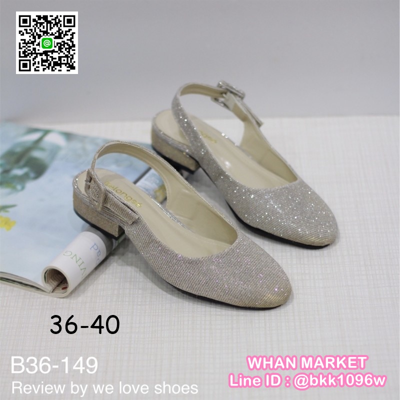 WhanMarketรองเท้ารัดส้น ส้นเตี้ย แต่งกลิตเตอร์วิ้งๆ สายปรับระดับได้ งานหัวมน ใส่สวย เหมาะสำหรับคนไม่ชอบใส่สูง ใส่ออกงาน ใส่เที่ยว ใส่ทำงานได้สบายๆเลยจ้า