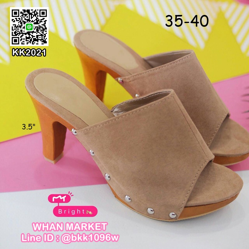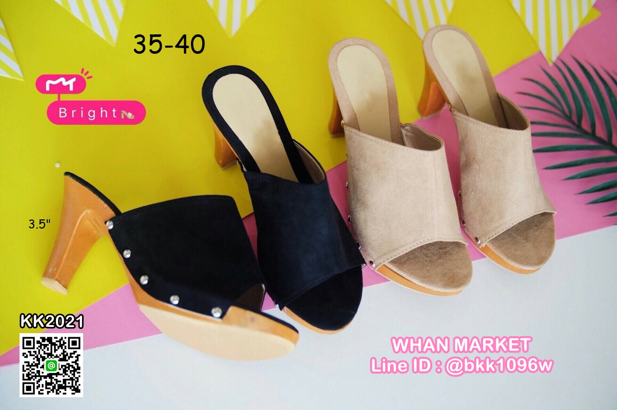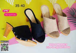 WhanMarketรองเท้าส้นไม้ สูง 3.5 นิ้ว เสริมหน้า 1 นิ้ว วัสดุหนังกลับ เก็บผิวเท้า เก็บหน้าเท้าสวย ลุ๊คเปรี้ยวที่สาวแซ่บไม่ควรพลาดคะ