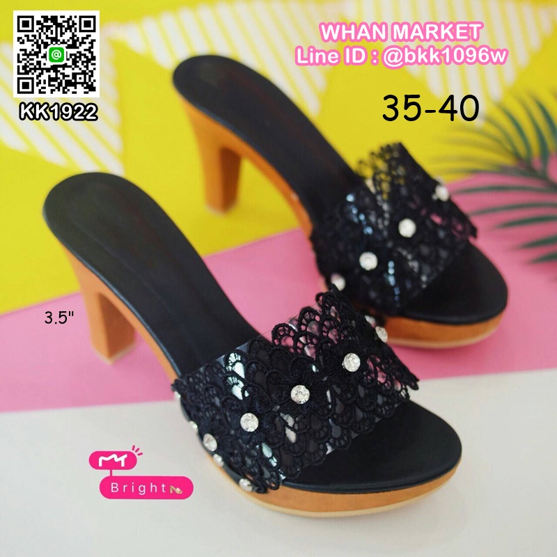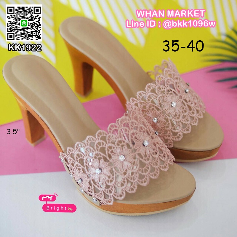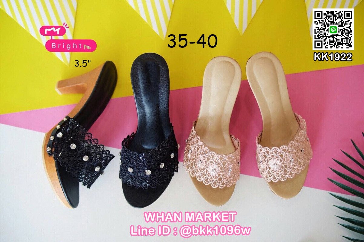 WhanMarketรองเท้าส้นไม้ ส้นสูง 3.5 นิ้ว เสริมหน้า 1 นิ้ว ด้านหน้าเป็นลูกไม้ประดับเพชร น้ำหนักเบา งานสวย มีเสริมหน้าเดินสบาย สวมใส่ง่าย ถ้าชอบอย่ารีรอ รีบสั่งกันเลยค่ะ