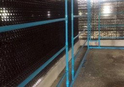 ออกแบบร่องอากาศให้มีความลาดเอียง เพื่อช่วยให้น้ำที่เหลือจากการระเหยไหลลงมาชำระล้างฝุ่นและสิ่งสกปรกออกจากพื้นผิว จึงช่วยเพิ่มประสิทธิภาพในการกรองฝุ่นละอองที่ปะปนในอากาศภายนอก ระบบจะทำงานได้เต็มประสิทธิภาพต้องดูแลรักษาความสะอาดอย่างสม่ำเสมอ