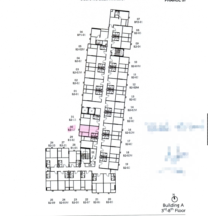 อาคาร A ชั้น 4 ห้องขนาด 27.8 ตร.ม.