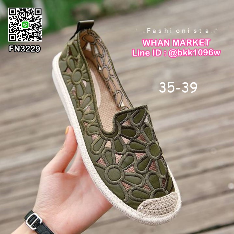 WhanMarketรองเท้าคัชชูลำลอง ทรงสลิปออน วัสดุ pu แต่งฉลุลายดอกไม้ผสมงานปัก เดินขอบด้วยเชือกป่านเนื้อหนานุ่ม สวมใส่ง่ายดูสบายตา พื้นยางเดินไม่ลื่น หนา 1" ทรงเก็บหน้าเท้าได้ดีมาก วัสดุขึ้นรูปสวยไม่ย้วยไม่แฟ่บ ตัดเย็บแข็งแรงคงทนมีรูระบายอากาศไม่อับชื้น งานน่ารักมากๆ ค่ะ อย่ามัวรีรอ รีบสั่งกันเลยจ้า