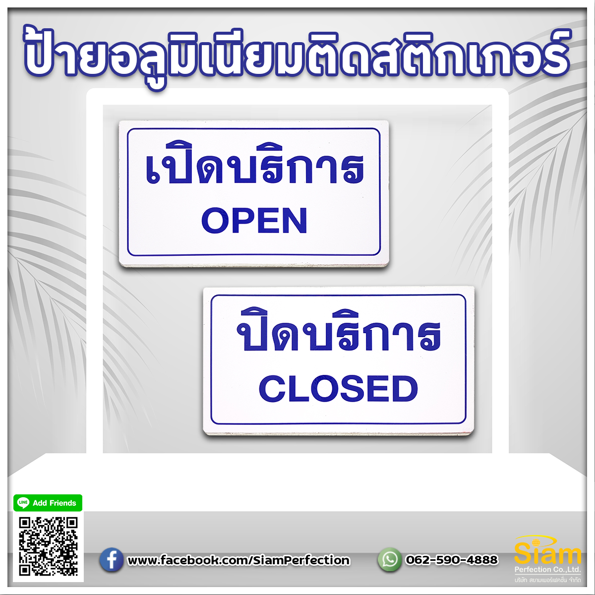 ป้ายอลูมิเนียมติดสติกเกอร์ พกพาและติดตั้งง่ายไม่ต้องกังวลเรื่องน้ำหนัก ทนต่อแรงกระแทกและอุณหภูมิสูง-ต่ำ วัสดุคุณภาพสูง เคลือบกันน้ำ สีไม่ซีดง่าย