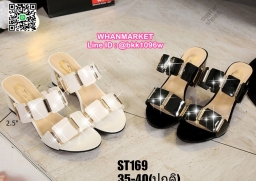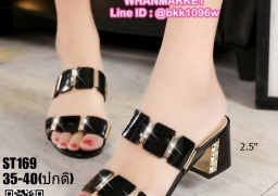 WhanMarketรองเท้าแตะสวม ส้นเหลี่ยม สูง 2.5 นิ้ว วัสดุหนังpu หนังเงาแวววาว คาดหน้า 2 ตอน ด้านและส้นแต่งสีทอง งานนำเข้า แฟชั่นสไตล์เกาหลี แบบเก๋หรูไม่ซ้ำใคร ส้น 2.5 นิ้ว ใส่สวย สอยกันด่วนๆ เลยจร้า