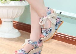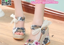 WhanMarketรองเท้ารัดส้นเตารีด สูง 4 นิ้ว วัสดุหนังPUนิ่ม หุ้มด้วยผ้าลูกไม้กริตเตอร์วิบๆลายดอกไม้ งานนำเข้า งานสวยหวานน่ารักด้วยสายผูกโบว์ข้าง พื้นนุ่ม น้ำหนักเบามาก สวมถอดได้ง่าย พื้นยางกันลื่นอย่างดี ส้นหลัง4นิ้ว เสริมหน้า1.5นิ้ว งานสวยมากจ้า
