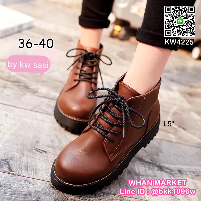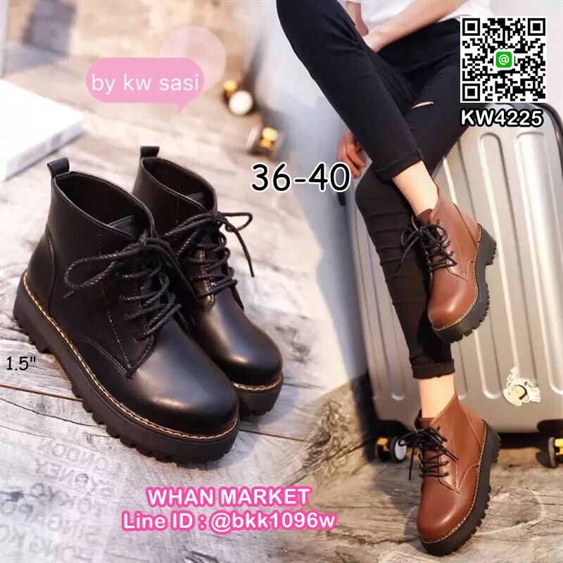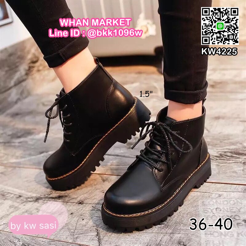 WhanMarketรองเท้าบูท ทรงมาร์ตินหุ้มข้อ ความสูงส้น1.5นิ้ว หน้าสูง1นิ้ว วัสดุเป็นหนังpu ทำความสะอาดง่าย ทรงสวยเท่เก๋ แมทซ์กับเสื้อผ้าได้หลายแนว สาวๆที่ชอบสไตล์นี้ รีบสั่งกันเลยค่ะ