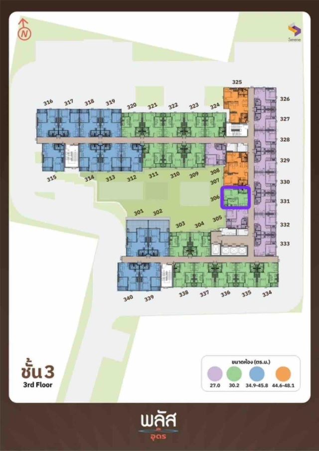 เนื้อที่ 30.20 ตร.ม. 1 ห้องนอน 1 ห้องน้ำ ชั้น 3 ที่จอดรถสะดวกสบาย