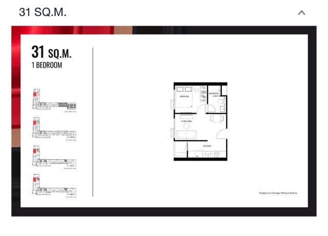 - 1 ห้องนอน ขนาด 31 ตรม.